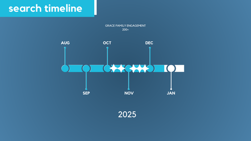 In October and November the Pastoral Candidate Profile Team began meeting with ministry leads and volunteers to determine Grace's core values, strengths, and areas of opportunity moving forward. The team was listening for qualities and characteristics that would be most beneficial in our next pastor. Meetings were held with every staff member, ministry lead, volunteers from all areas of ministry as well as legacy life groups in order to hear from a large cross section of Grace members. Additionally, everyone was invited to participate though an open forum, email, and personal conversations. These discussions provided a rich picture of the Grace family and helped us better articulate what makes Grace such a special place to grow spiritually. We are finalizing the compilation of these findings to create a candidate profile. The target date for posting the job opening will be mid-January. The Recruitment Strategy Team has identified a dozen institutions that align with our core values and will begin by posting the job opportunity to these sites. Once the position is posted, the candidate profile will be made available for Grace members to read on this webpage. The Pastoral Search Team will begin evaluating applications as they arrive. Please see the timeline for further insight into the process moving forward after that. During this whole journey, we covet your prayers for discernment and that God will be preparing the hearts of our next pastor and his family. We recognize that this process is an opportunity for spiritual formation in our lives. It is a time to seek the Lord's guidance, ask for His best, and practice waiting on His provision.
